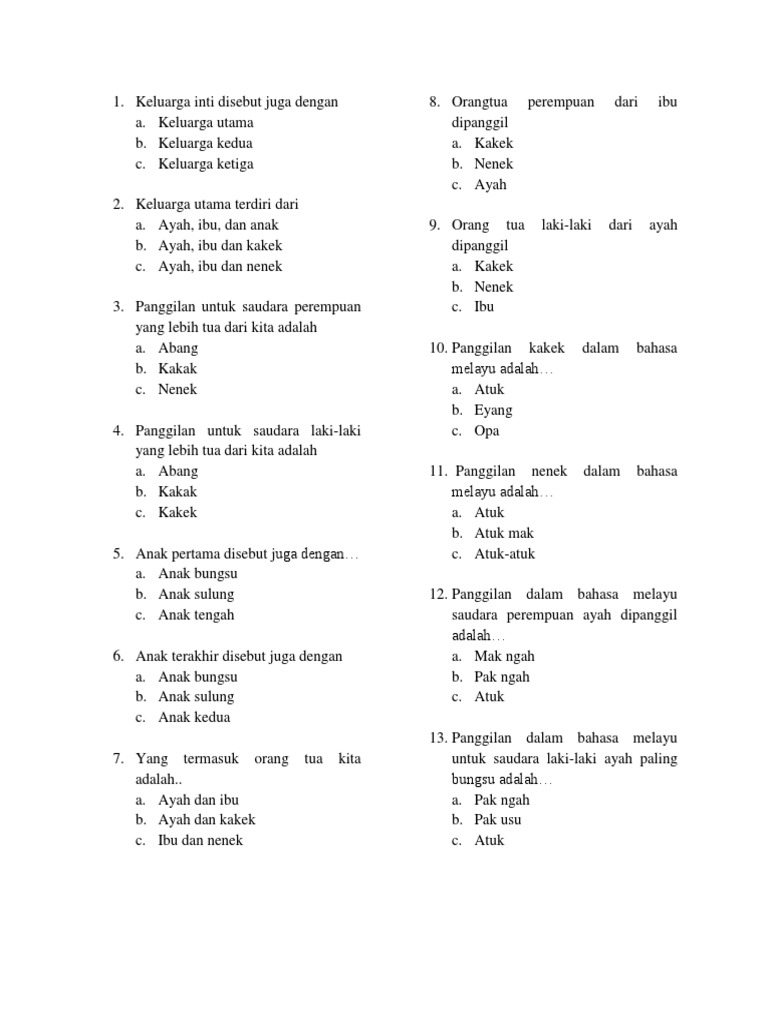 soal latihan 3 peristiwa penting dalam keluarga paket 01