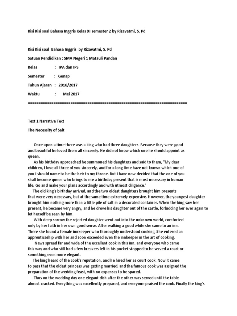 KISI KISI Soal Bahasa Inggris Sma Semester GANJIL Kelas Xi - arts-n-more : powered by Doodlekit