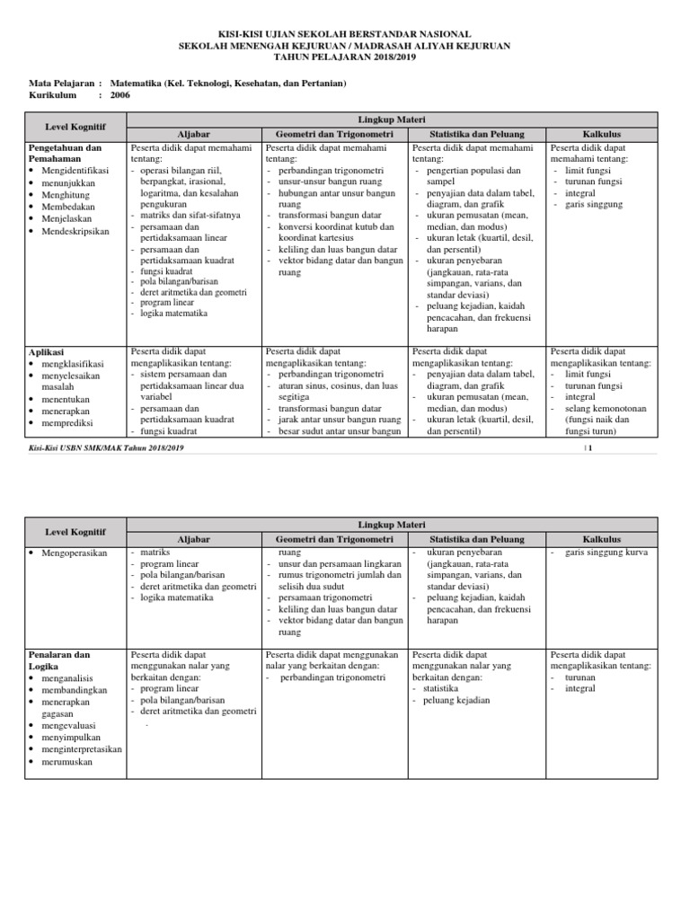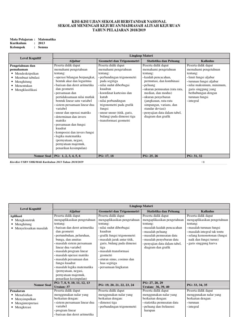 Kisi-Kisi Soal USBN Matematika SMK Kurikulum 2013 Tahun 2019 …