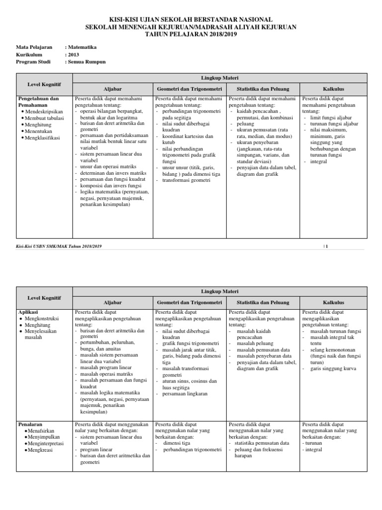 Kisi-Kisi Soal UN Matematika SMK Kurikulum 2013 Tahun 2019 | Kisi …