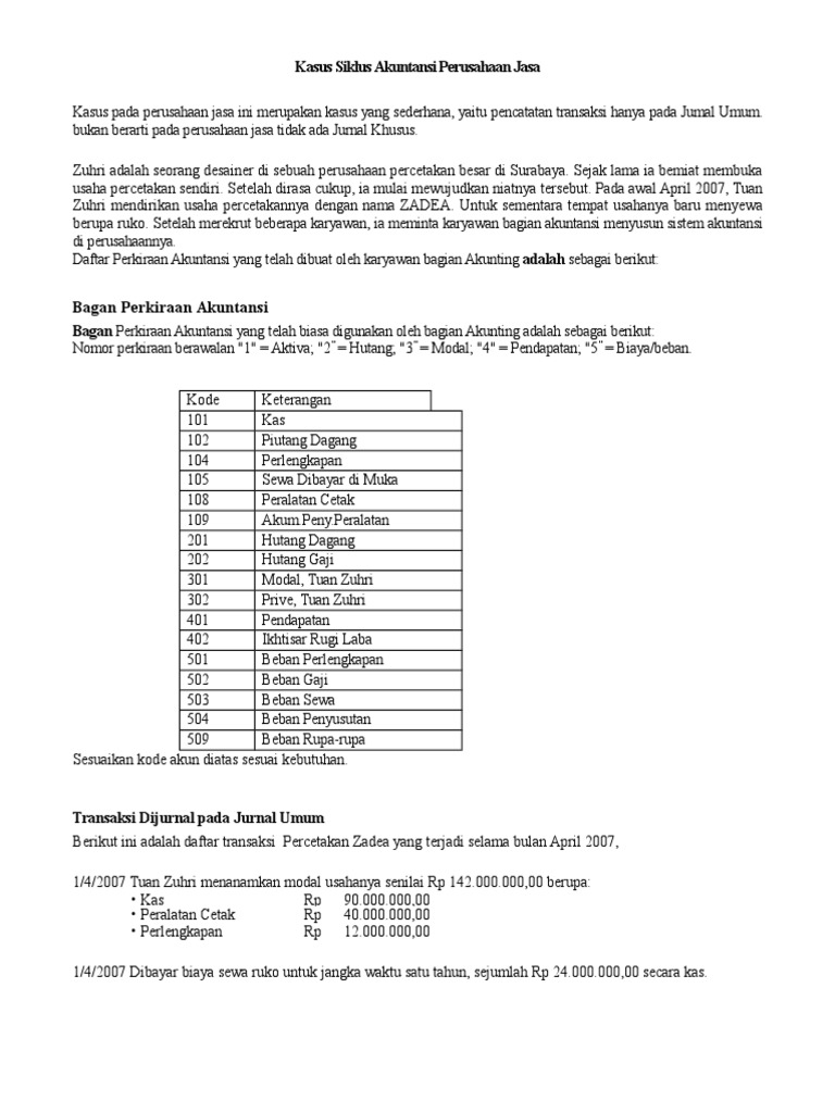 Kasus Siklus Akuntansi Perusahaan Jasa