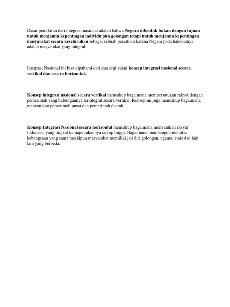 Konsep Integrasi Nasional Secara Horizontal Membahas Tentang