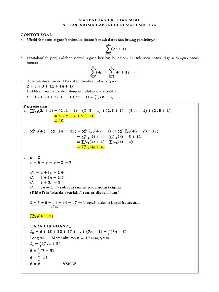 Contoh Soal Notasi Sigma Dan Induksi Matematika - Contoh Soal Terbaru