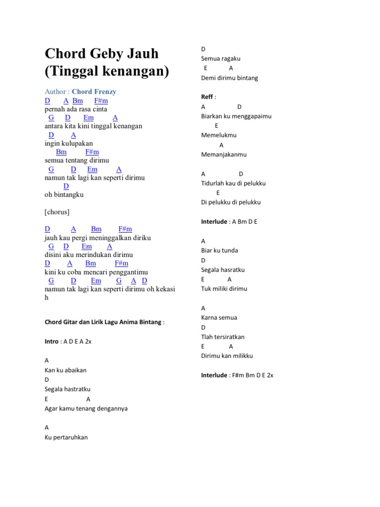 Kunci Gitar Chord Gaby - Tinggal Kenangan (Jauh) Chord Dasar Mudah …