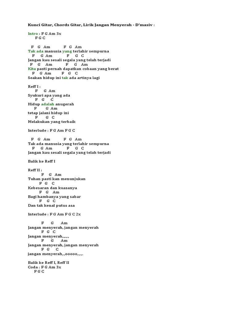 Kunci Gitar Lagu Jangan Menyerah Dmasiv - Kunci Gitar Terlengkap
