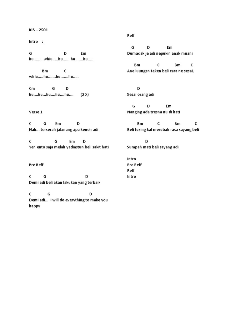 Lirik & chord lagu… Nanoe biroe ~ Nak mule kuangan…. Chord …