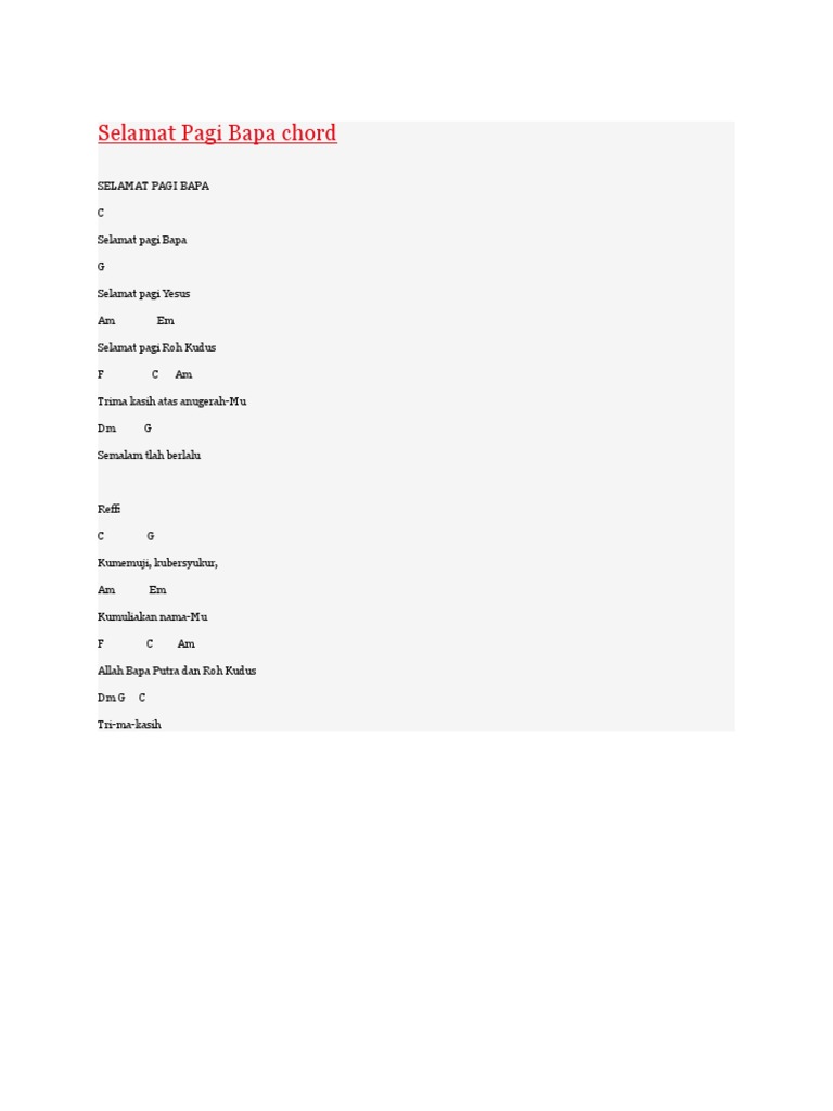 Chord Lagu Selamat Pagi Bapa