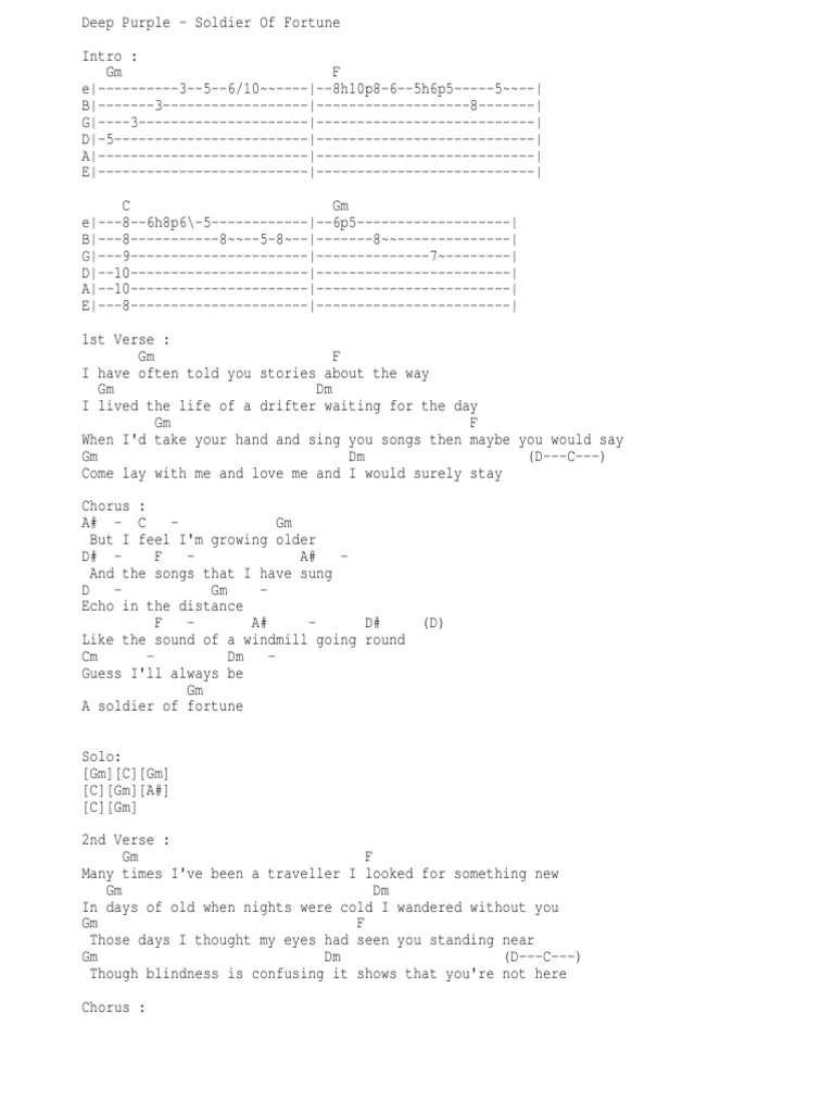 Soldier of Fortune - Lyrics and chords @ ironpick.com