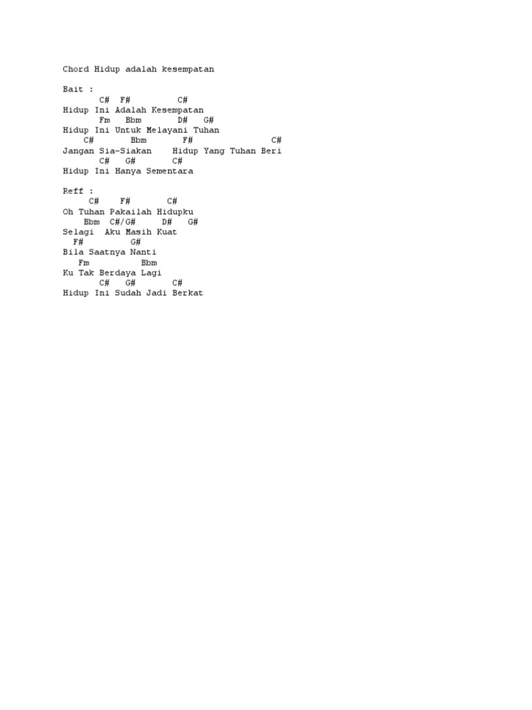 Lirik Lagu Hidup Ini Adalah Kesempatan Dan Kunci Gitar