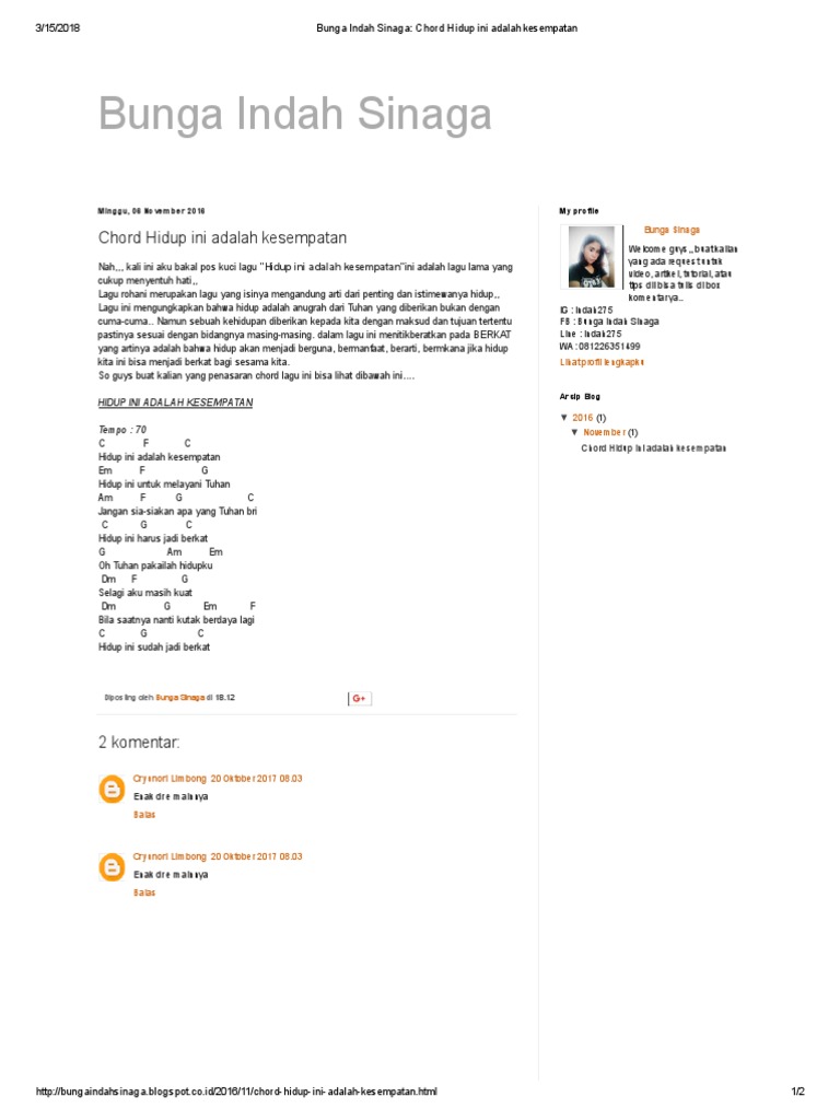 Chord Gitar Hidup Ini Adalah Kesempatan - Lagu Rohani Kristen …