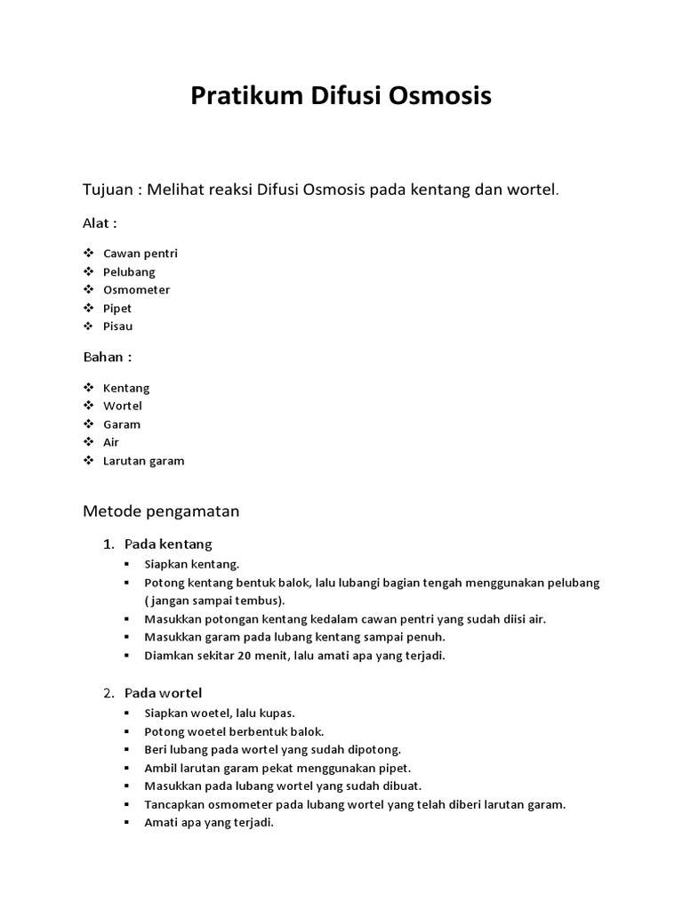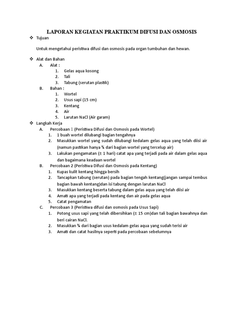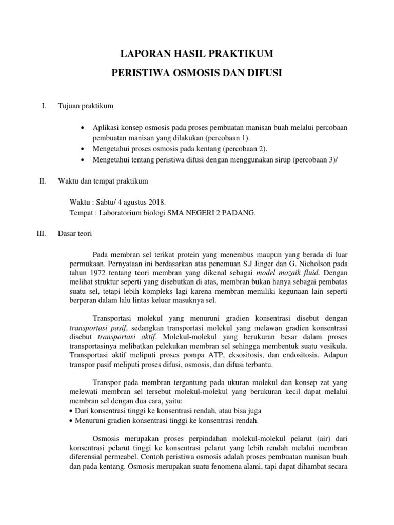 Contoh Laporan Praktikum Difusi Dan Osmosis Pada Kentang - Bagikan Contoh