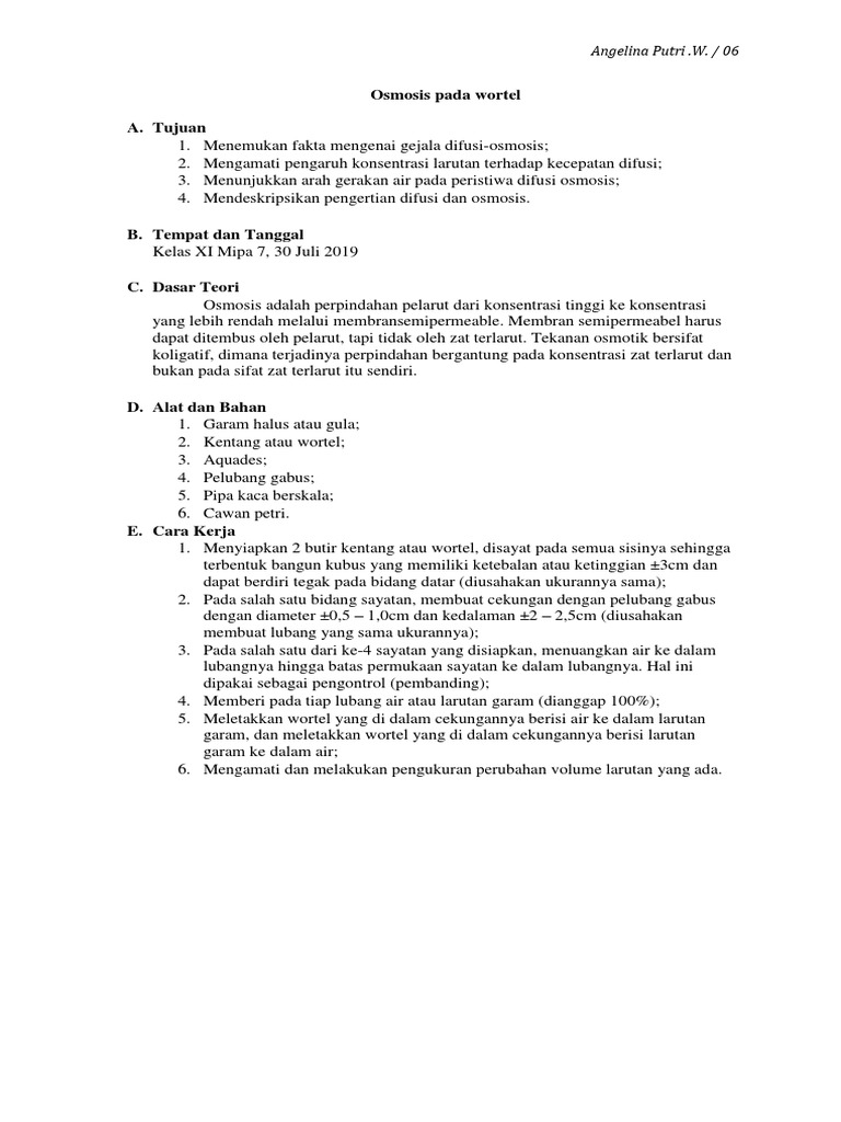DOC) LAPORAN PRAKTIKUM KIMIA TEKANAN OSMOTIK PADA WORTEL | Dian Adelia Pertiwi - Academia.edu