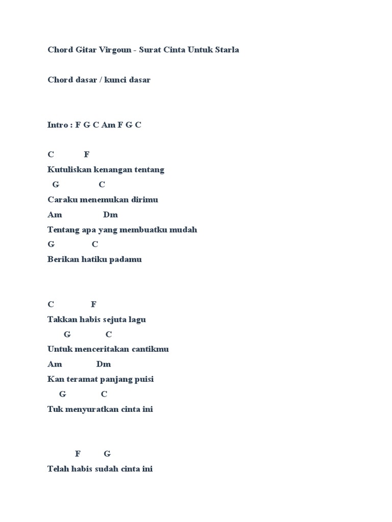 Kunci Gitar Virgoun - Surat Cinta Untuk Starla Chord [x4e6vxv1z9n3]