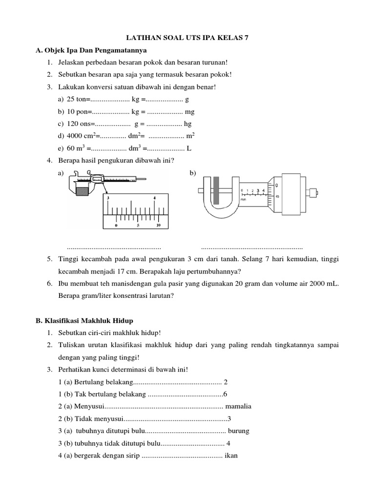 Soal Uts Ganjil IPa Smp Kelas 7 Semester 1