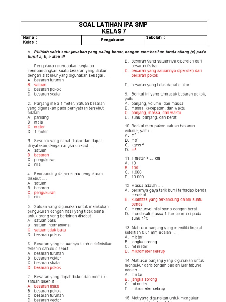Soal Latihan Ipa 7 Smp (Pengukuran)
