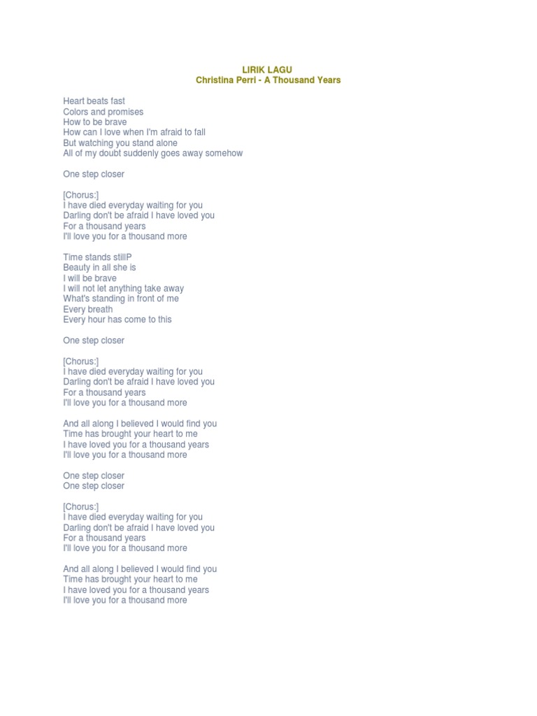 Lirik lagu a thousand years dan tensenya pliss,, - Brainly.co.id