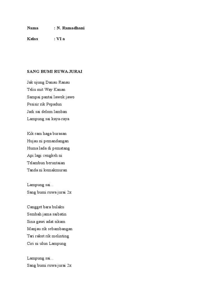 Lirik Lagu Lampung - Sang Bumi Ruwa Jurai - Karaoke Lirik | Facebook