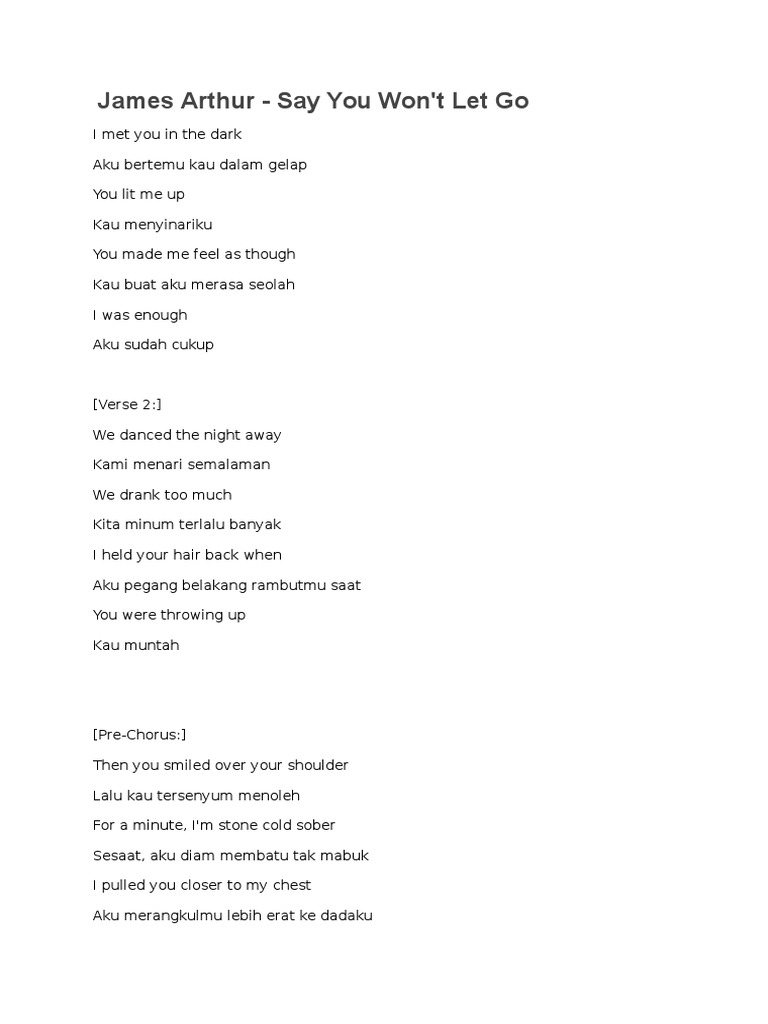 James Arthur “Say You Won’t Let Go” (Terjemahan Lirik Indonesia …