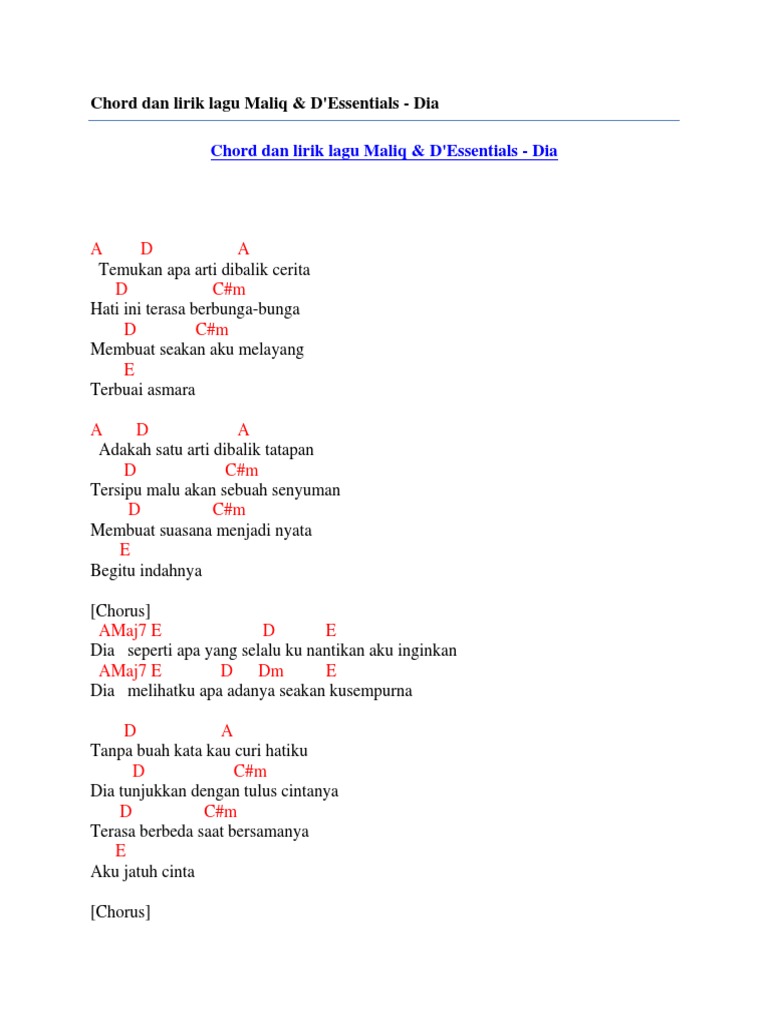 Chord dan lirik lagu maliq & d’essentials dia by Chord Zila - issuu