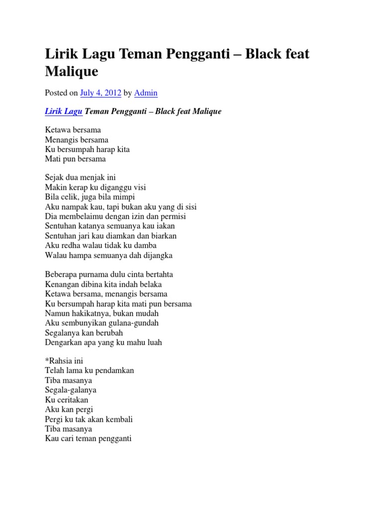 Lirik Lagu Teman Pengganti Black feat Malique