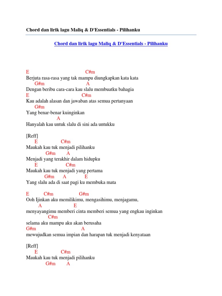 Chord dan lirik lagu maliq & d’essentials pilihanku by Chord Zila …