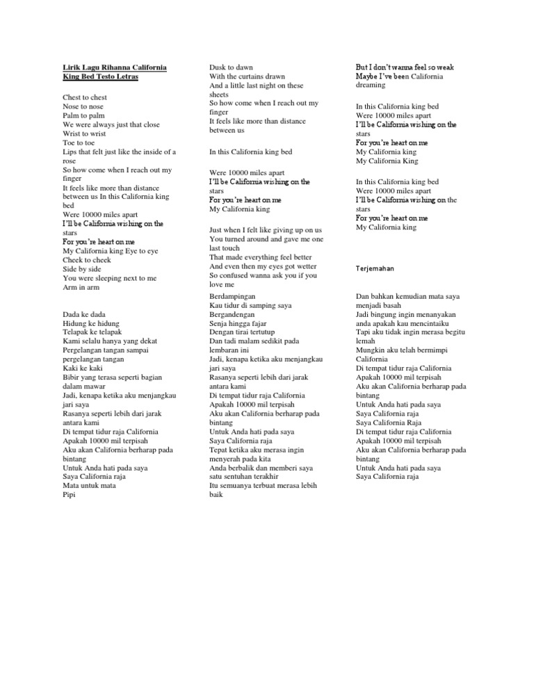 Lirik lagu rihanna california king bed translate - daedalusdrones.com