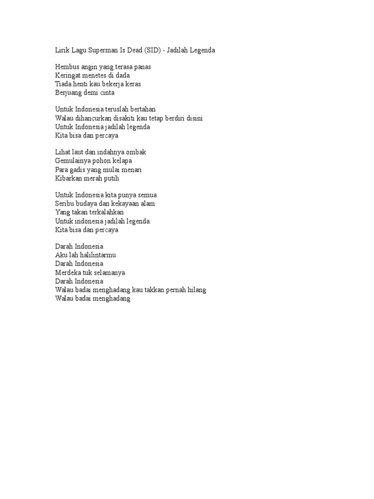 Lirik Lagu Superman Is Dead ‘Jadilah Legenda’ - News …