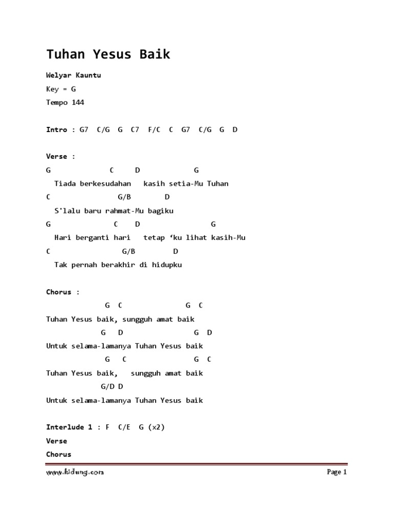 Tuhan Yesus Baik chords & lyrics - Welyar Kauntu | Psalmnote