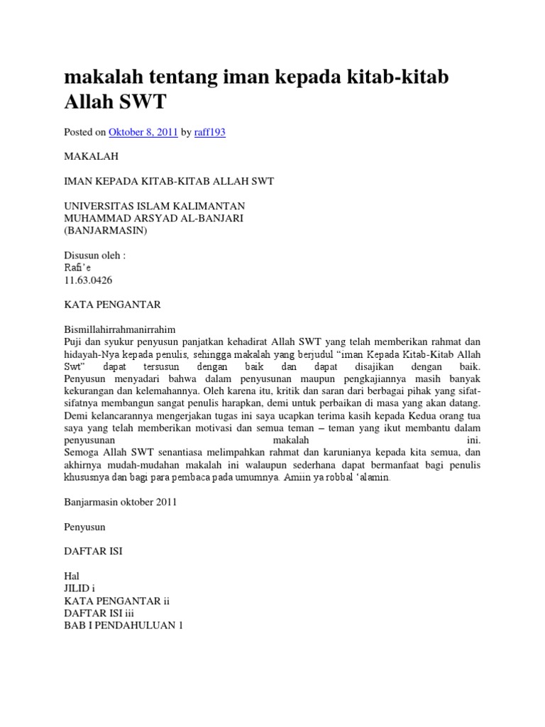 DOC) Makalah Tentang Beriman Kepada Kitab-Kitab Allah | Sahrul …