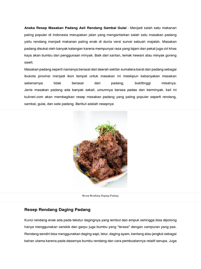 Aneka Resep Masakan Padang Asli Rendang Sambal Gulai