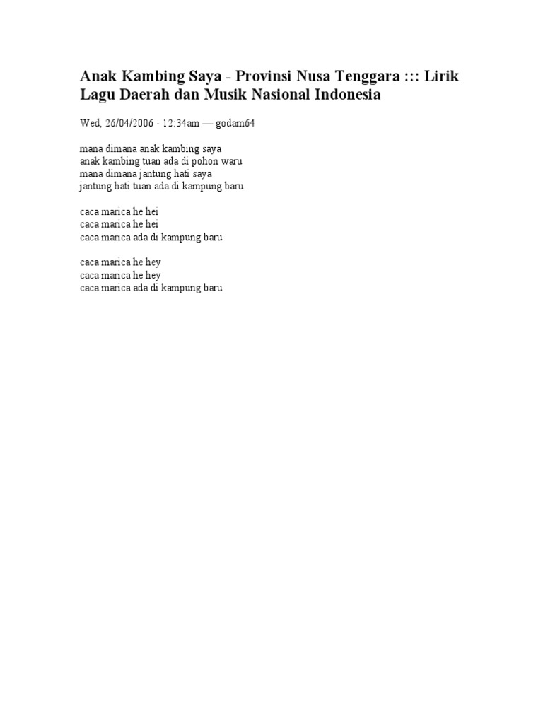 Lirik Lagu Anak Kambing Saya - Lagu Daerah Nusa Tenggara …