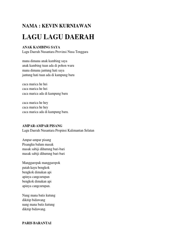 LIRIK LAGU DAERAH INDONESIA (ANAK KAMBING SAYA) - YouTube