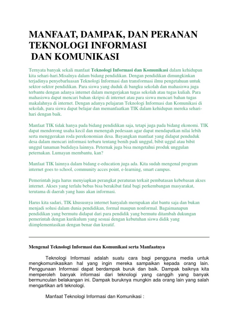 Manfaat Teknologi Informasi Dalam Dunia Kerja & Peran Teknologi Informasi Dalam Dunia Global – Site Title