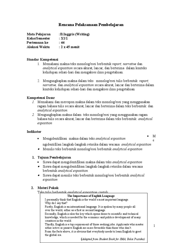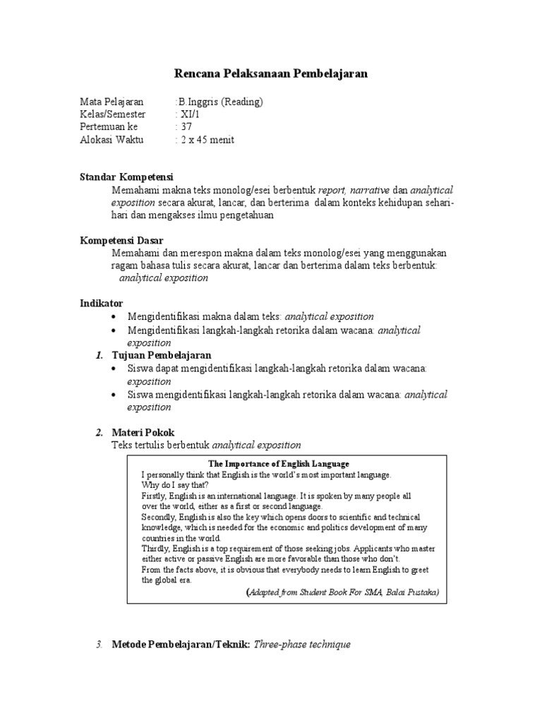 DOC) RPP ANALYTICAL EXPOSITION TEXT WRITING SKILL XI.docx | Ais Navila - Academia.edu