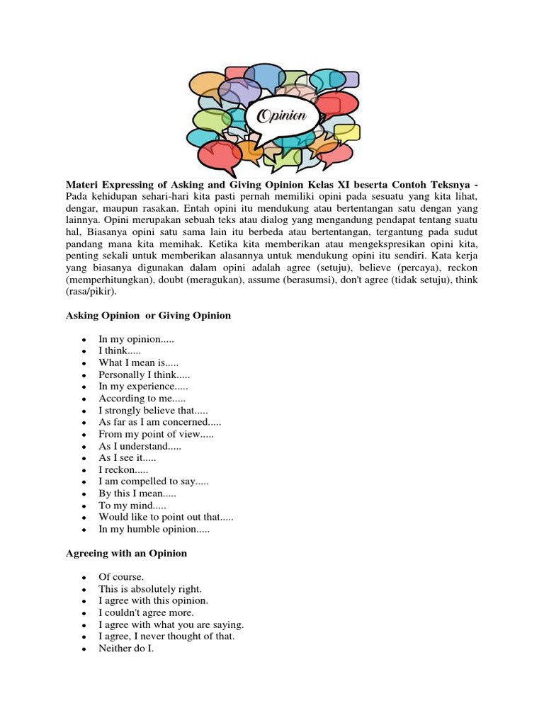 Materi Expressing of Asking and Giving Opinion Kelas XI beserta …
