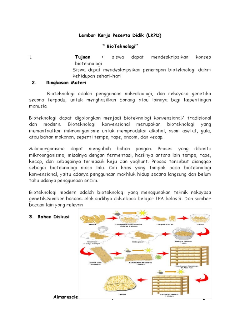 LKPD BIOTEKNOLOGI KELAS 9 interactive worksheet