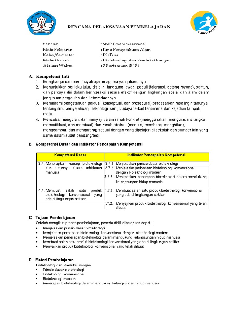 Download Rpp 1 Lembar IPA Kelas 9 SMP Semester 1 Dan 2 K13 Revisi …