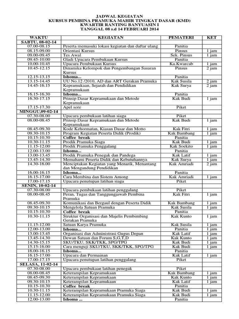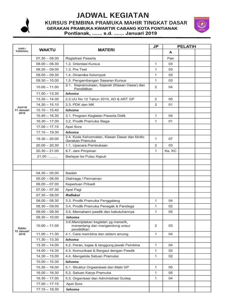 Info Jadwal KPD dan KPL pusdiklatnas 2018 | PRAMUKA NUSANTARA 14