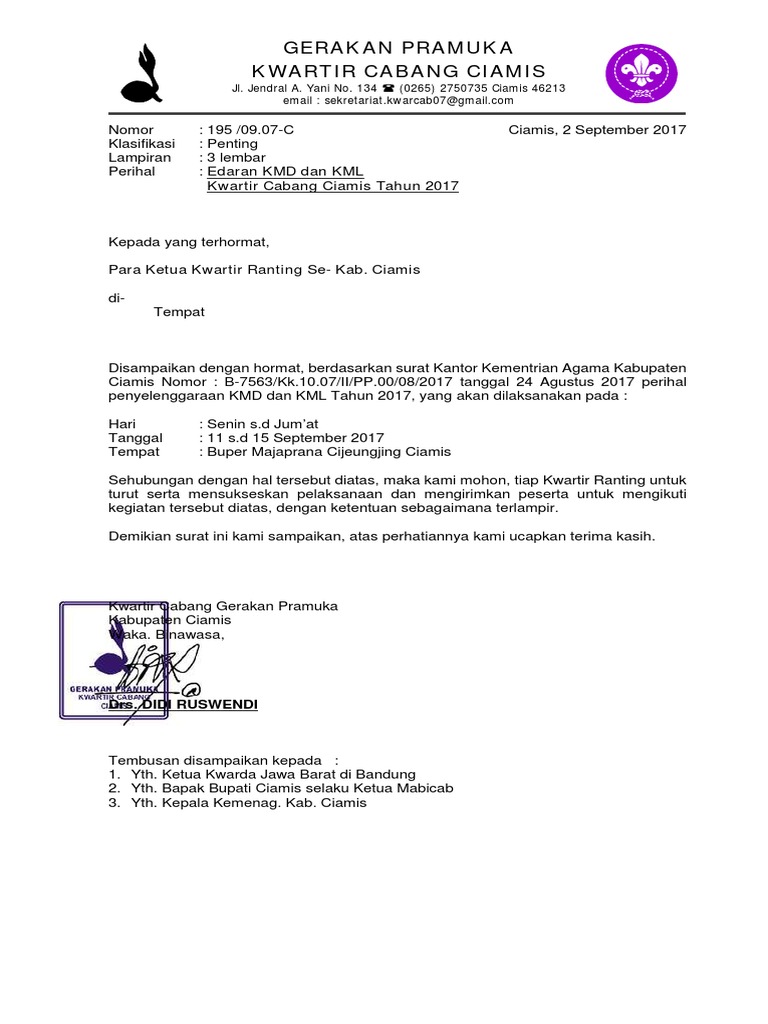 Contoh Format Surat Tugas Mengikuti Kegiatan KMD Gerakan Pramuka …