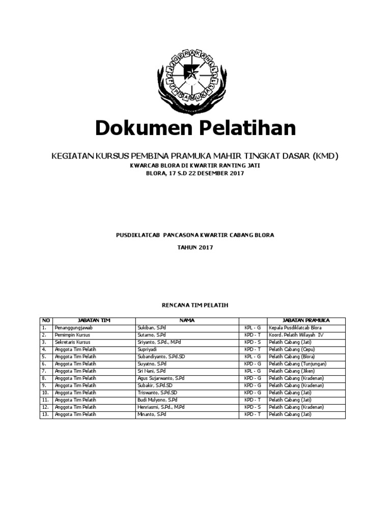 Contoh Laporan Pelaksanaan Kursus Mahir Dasar (KMD) Pembina Pramuka