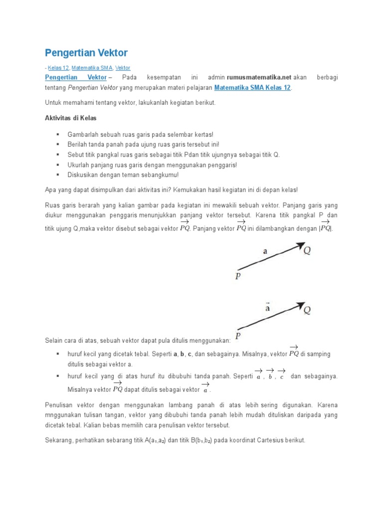 Soal Dan Pembahasan Vektor Matematika Doc - Kunci Ujian