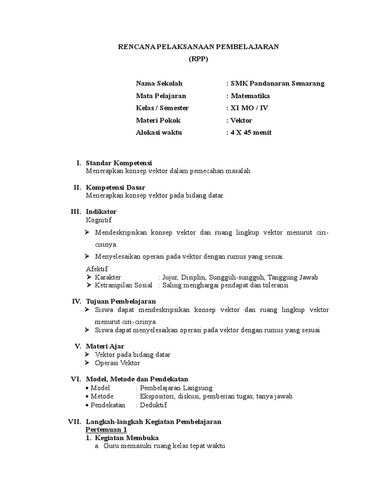 Rpp Vektor Matematika Kurikulum 2013 – IlmuSosial.id