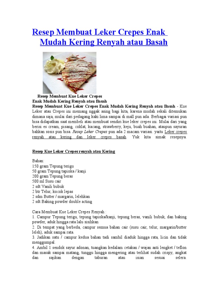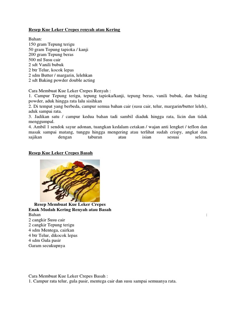 KUE LEKER/CREPES Teksturnya “kres-kres”… - Kumpulan Resep Kreatif | Facebook