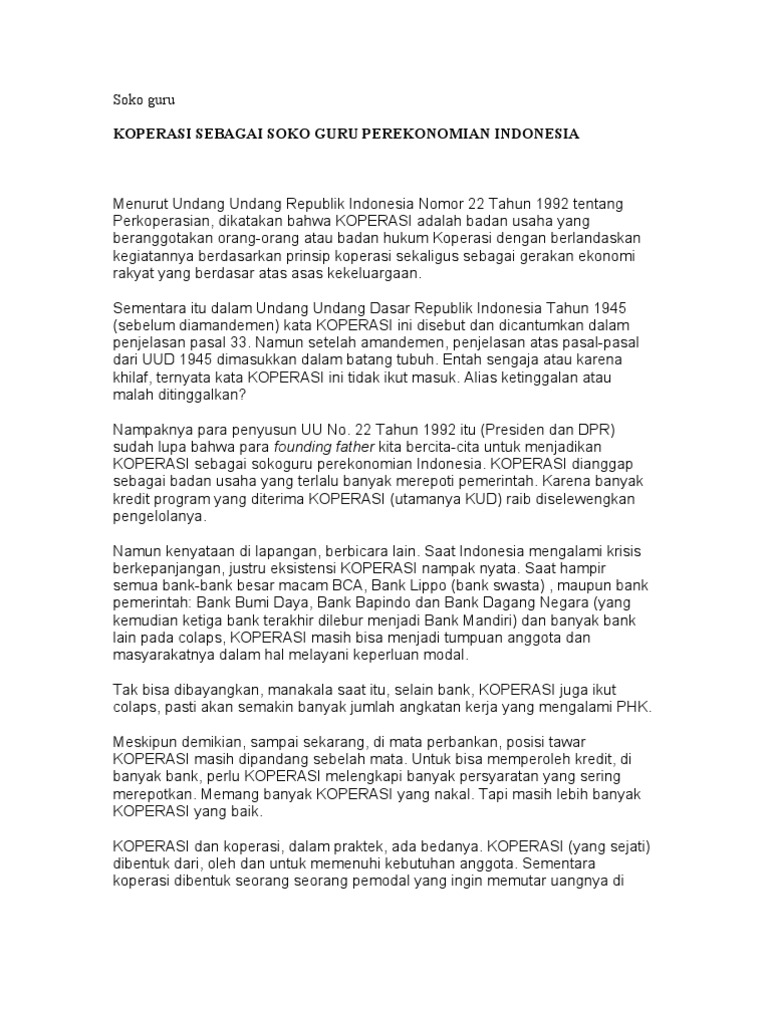 Apakah Koperasi Sebagai Soko Guru perekonomian Indonesia masih …