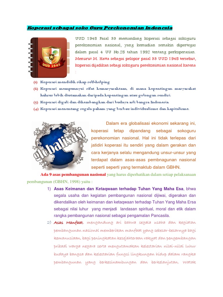 Jelaskan maksud koprasi sebagai soko guru perekonomian nasional …