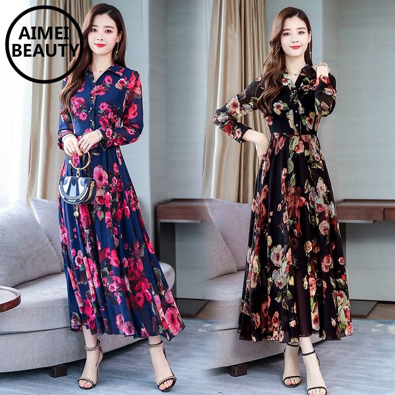 ▧ ♧ 2020 Gaun Maxi Wanita Bahan Sifon Tipis Motif Bunga untuk Musim Semi | Shopee Indonesia