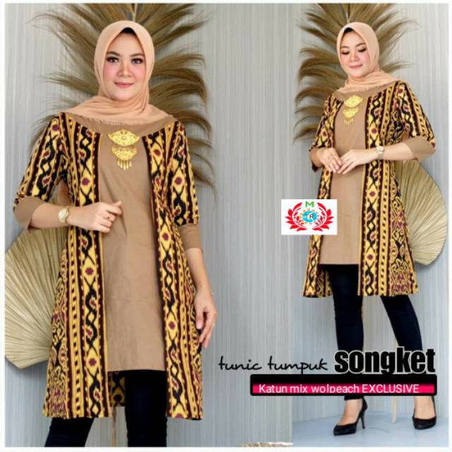 Atasan wanita dewasa baju tunik batik tumpuk songket anggun dan …
