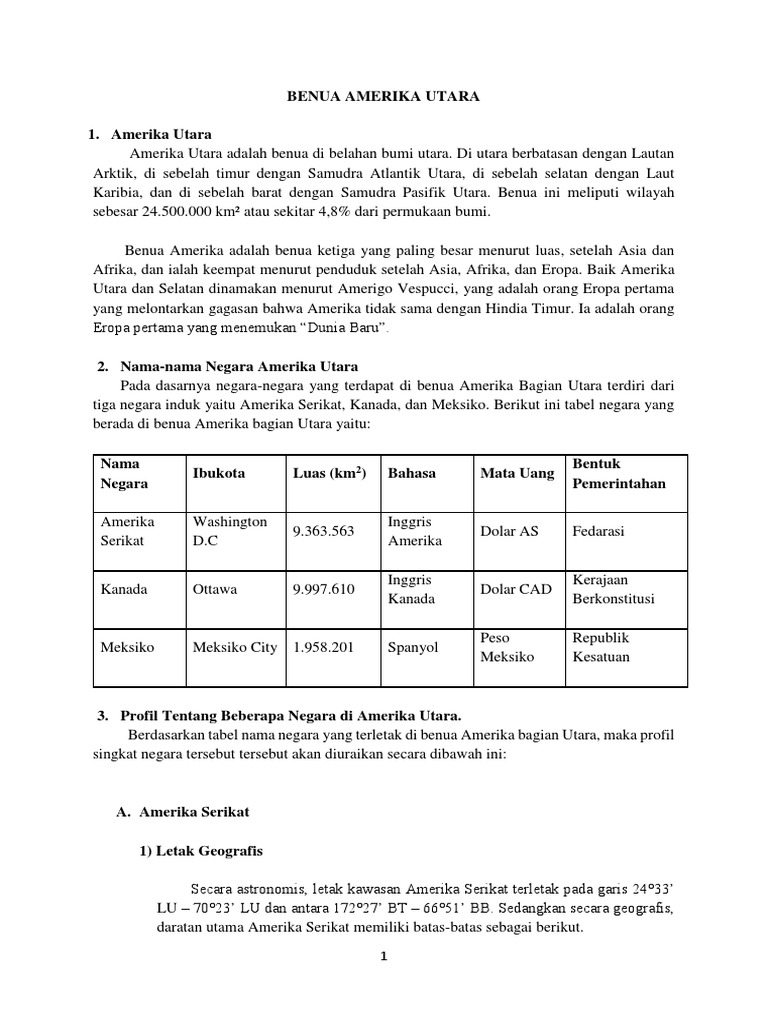 Perhatikan peta benua Amerika danbtulislah nama negara,ibukota,dan luas wilayah seperti pada tabel - Brainly.co.id