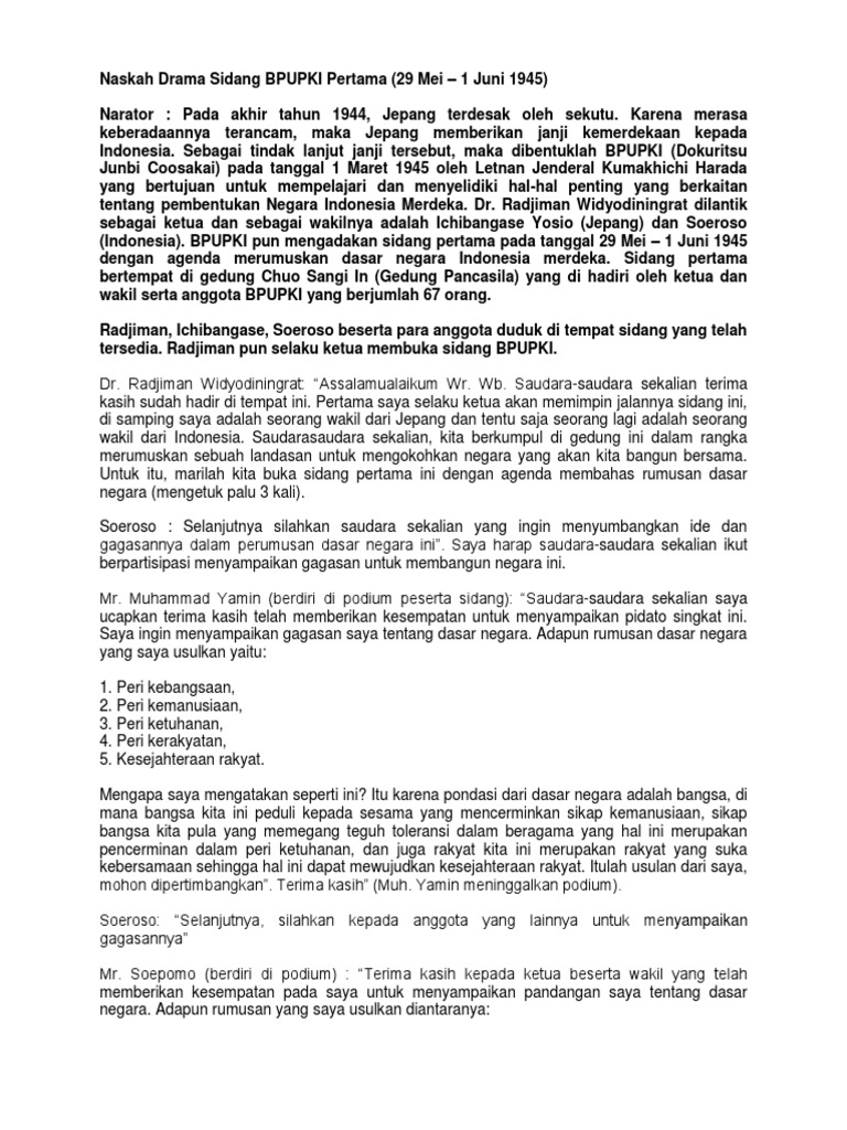 Naskah Drama Sidang BPUPKI Pertama