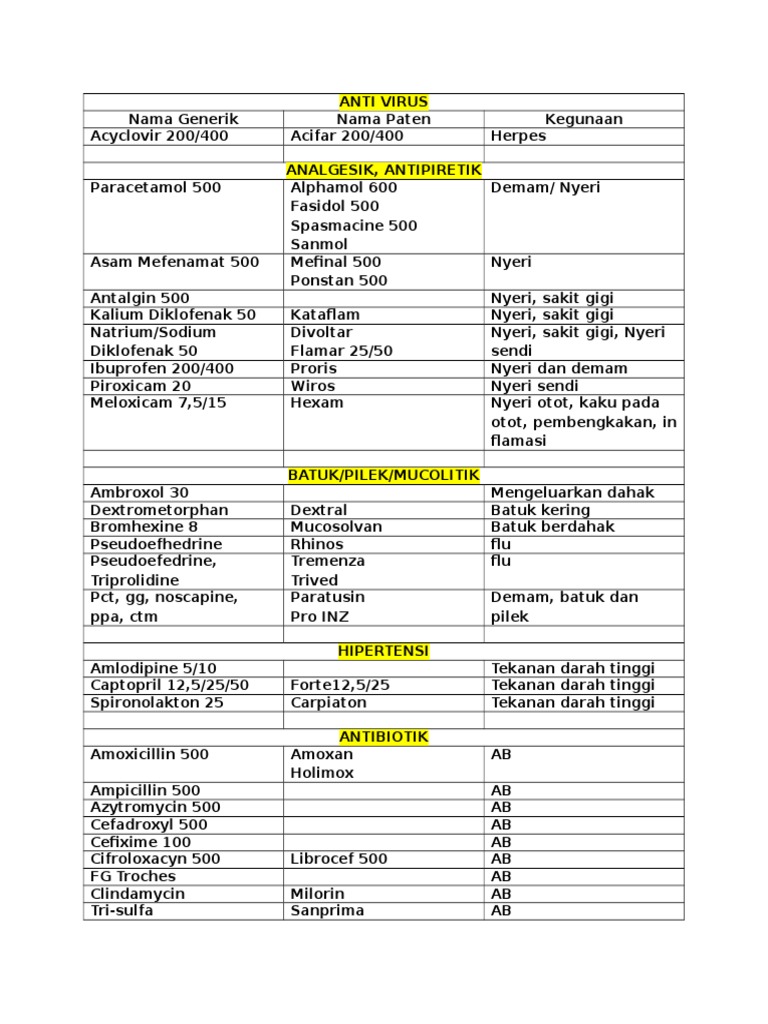 Nma Obat Paten 2 | Organic Compounds | Medical Treatments